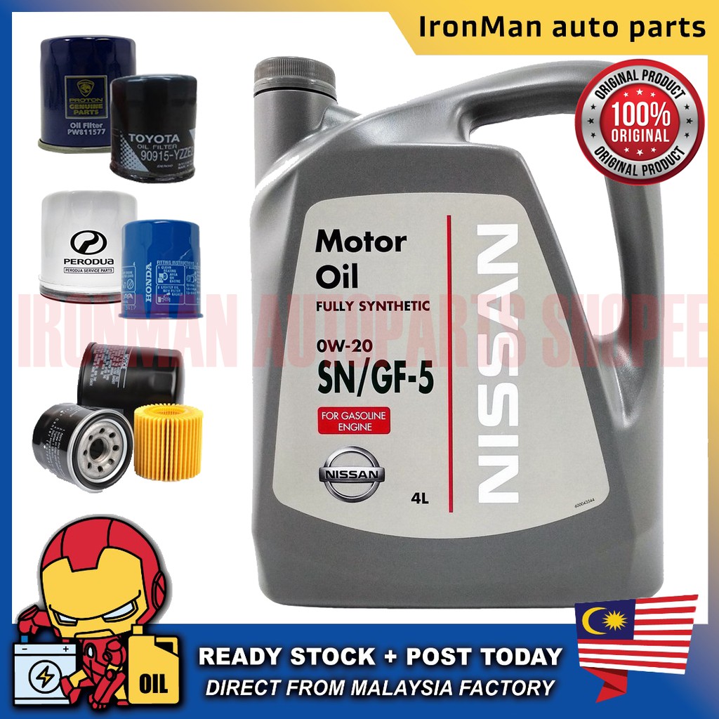 Original Nissan Fully Synthetic 0w20 Engine Oil 4l Sngf 5 Minyak Hitam 0w 20 Combo Oil Filter Shopee Malaysia